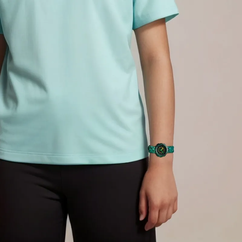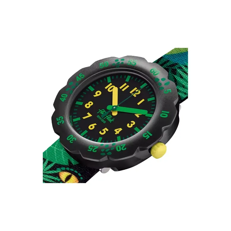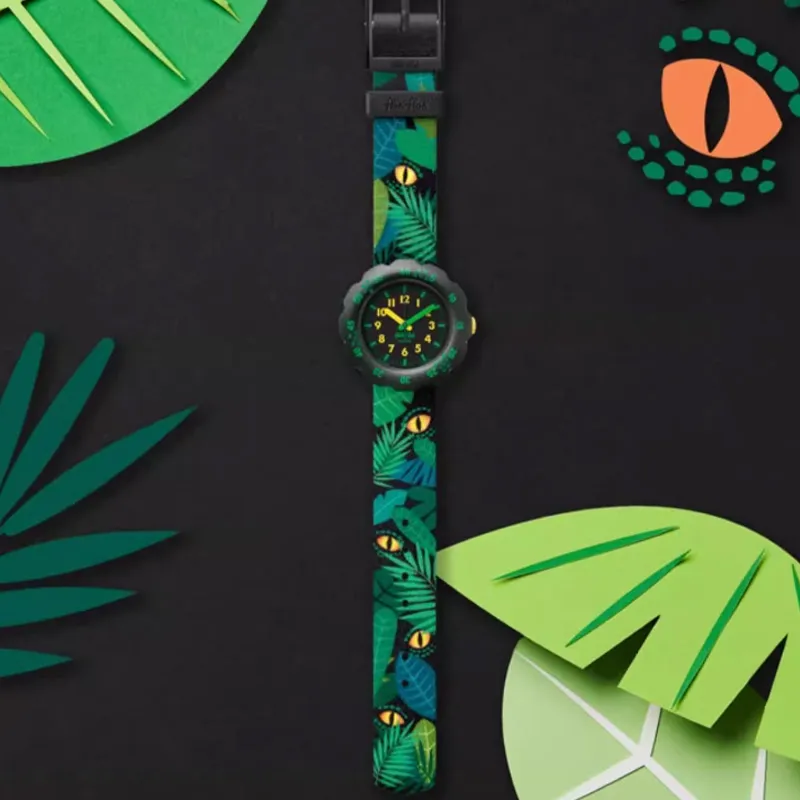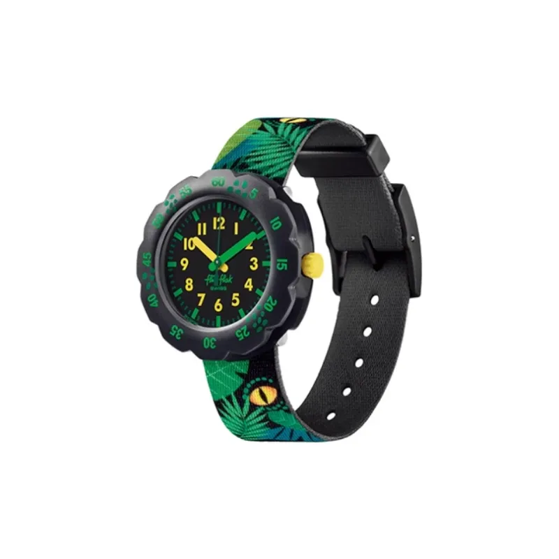 SWATCH Flik Flak Feifei Series Кварцевый механизм Детские часы 34,75*30,6 мм Черный циферблат Пластиковый корпус Часы Тканевый ремешок