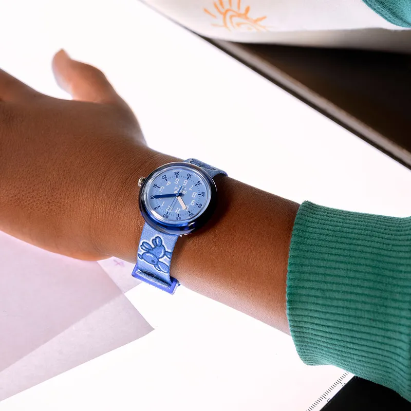 SWATCH Flik Flak Feifei Series Кварцевый механизм Детские часы 31,85 мм Синий циферблат Биоматериал Корпус часов