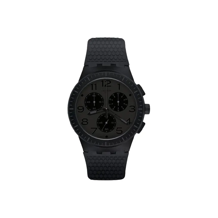 SWATCH Chrono Collection Кварцевый механизм Мужские часы Часы 42 мм Черный циферблат Пластиковый корпус Часы Силиконовый ремешок