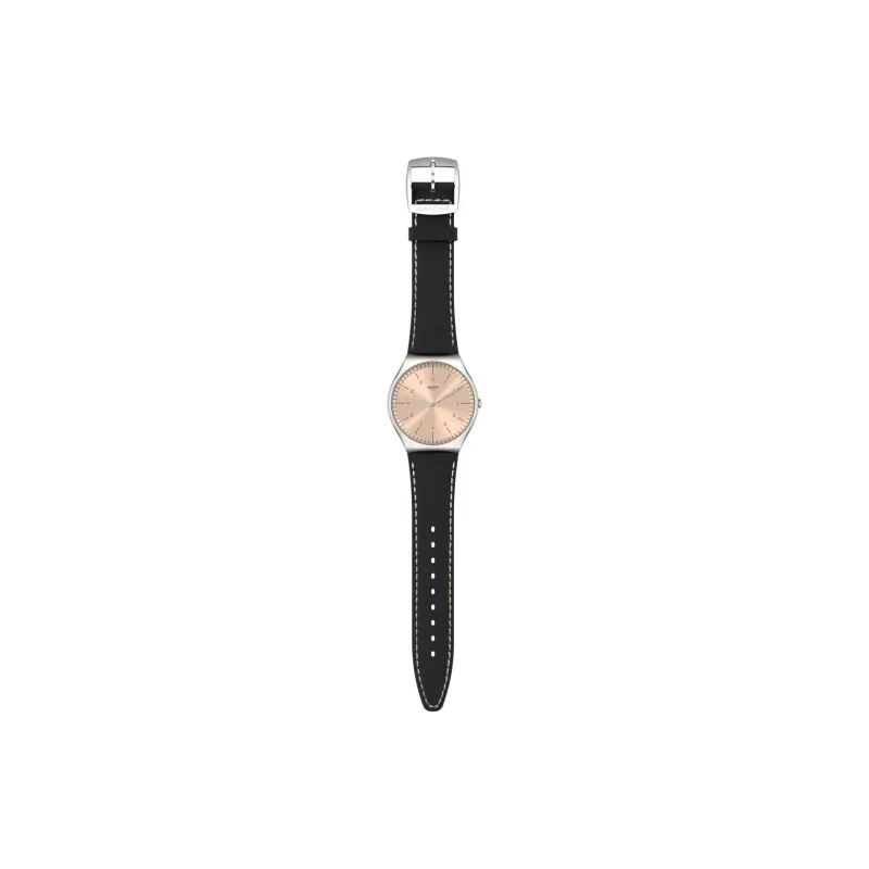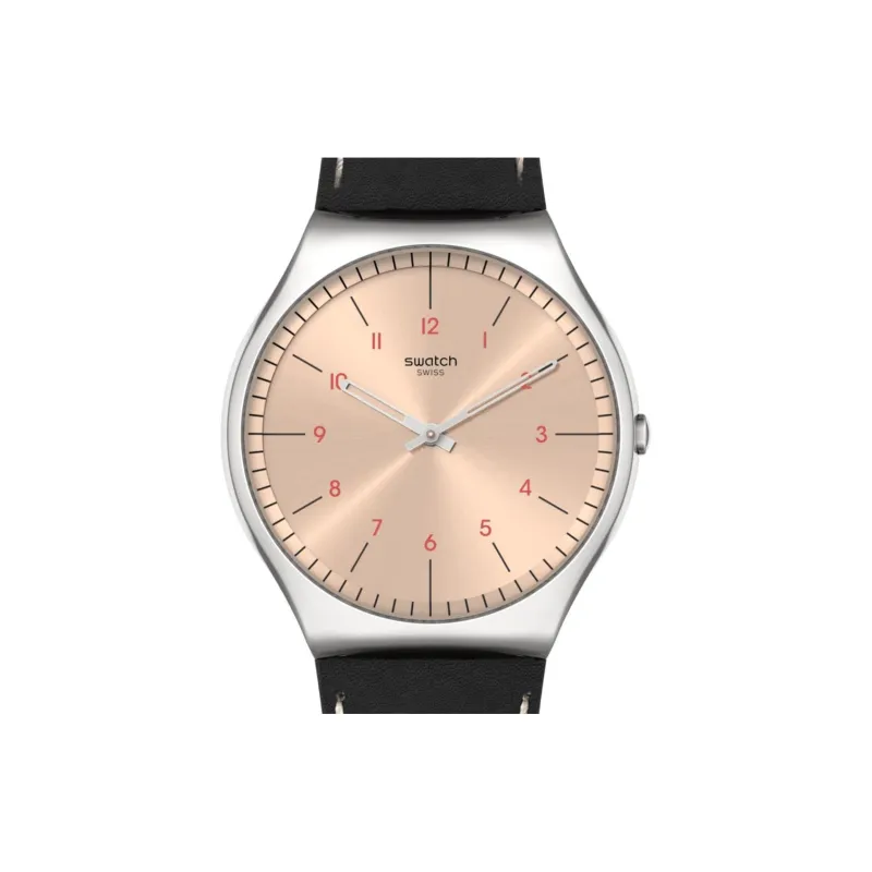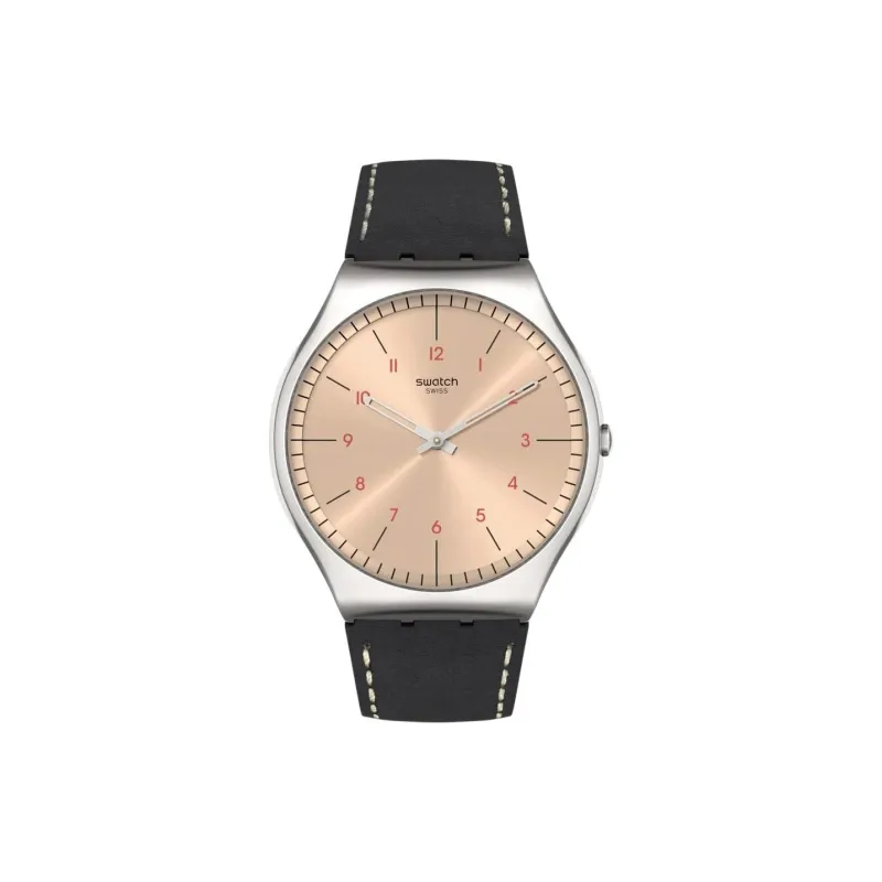 Swatch Quartz Механизм Мужские часы Часы 42 мм Шампанский циферблат Корпус из нержавеющей стали Кожаный ремешок