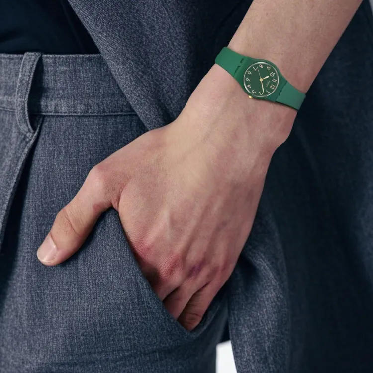 Swatch Quartz Механизм Унисекс Часы 25 мм Зеленый Циферблат Bio-Based Пластиковый Корпус Часов Bio-Based Пластиковый Ремешок