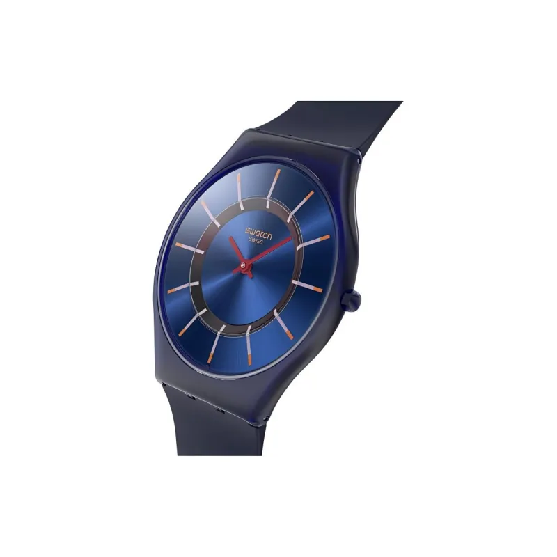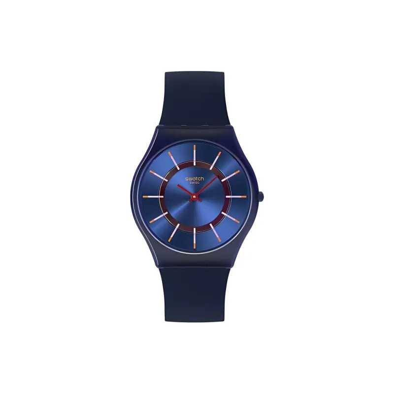 Swatch Quartz Механизм Унисекс Часы 34 мм Синий Циферблат Bio Based Чехол Часы Силиконовый Ремешок