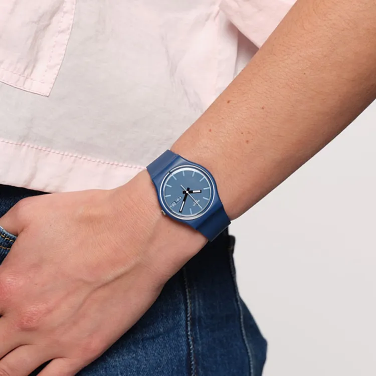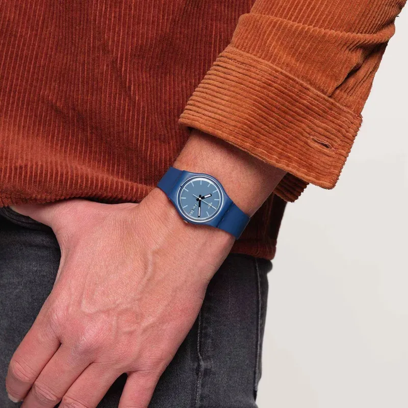 Swatch Quartz Механизм Унисекс Часы 34 мм Синий Циферблат Bio-Based Материал Корпус Часов Bio-Based Материал Ремешок