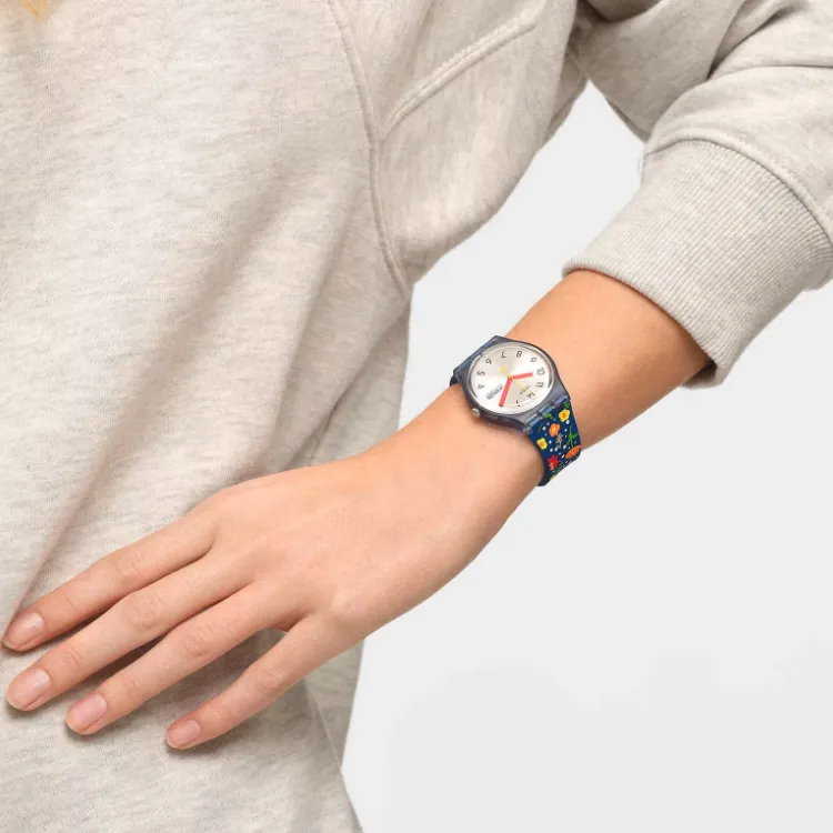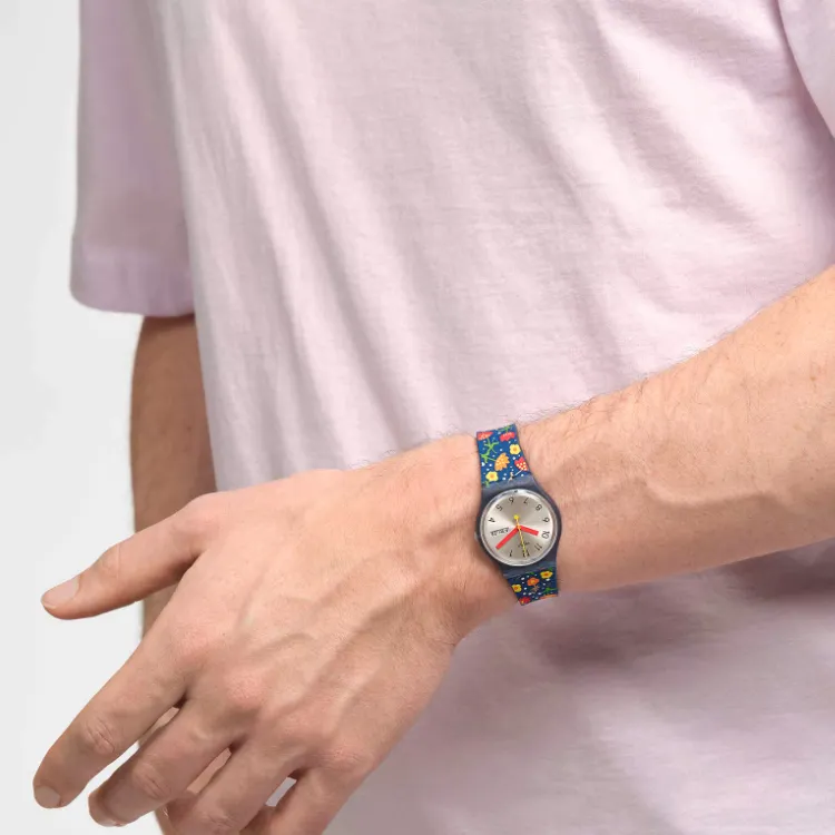 Swatch Quartz Механизм Унисекс Часы 34 мм Серый Циферблат Bio-Based Материал Корпус Часы Силиконовый Ремешок