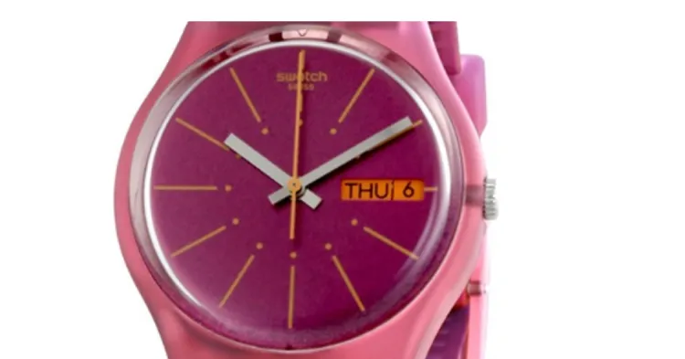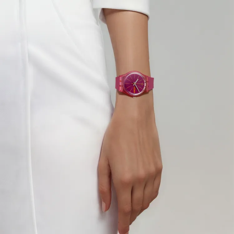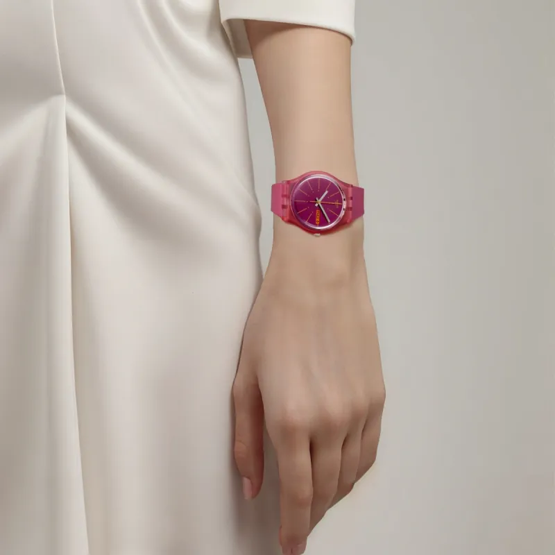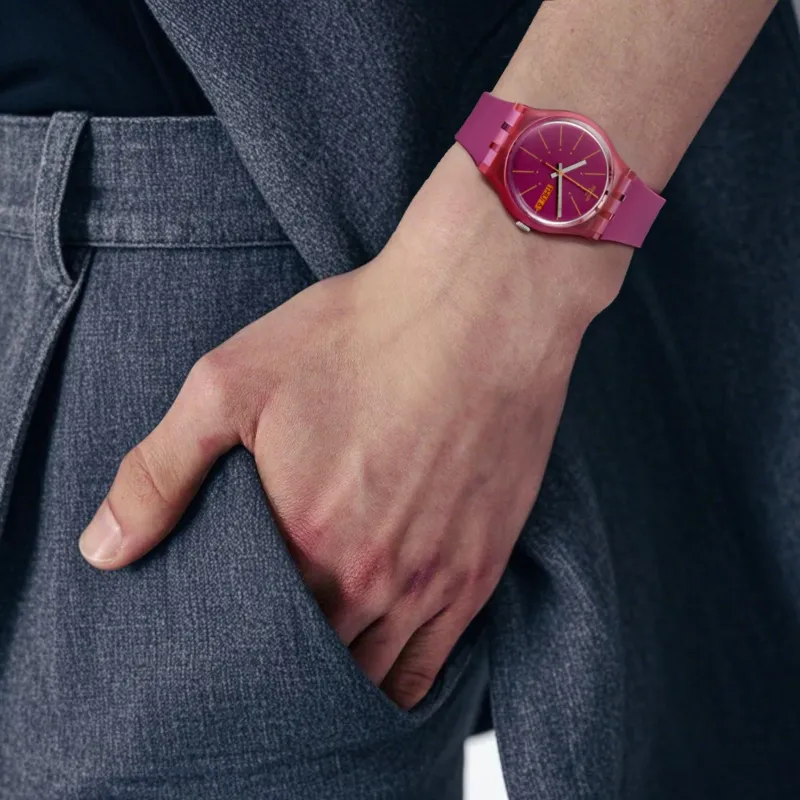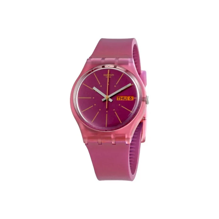 Swatch Quartz Механизм Унисекс Часы 34 мм Розовый Циферблат Часы Пластиковый Корпус Часы Силиконовый Ремешок