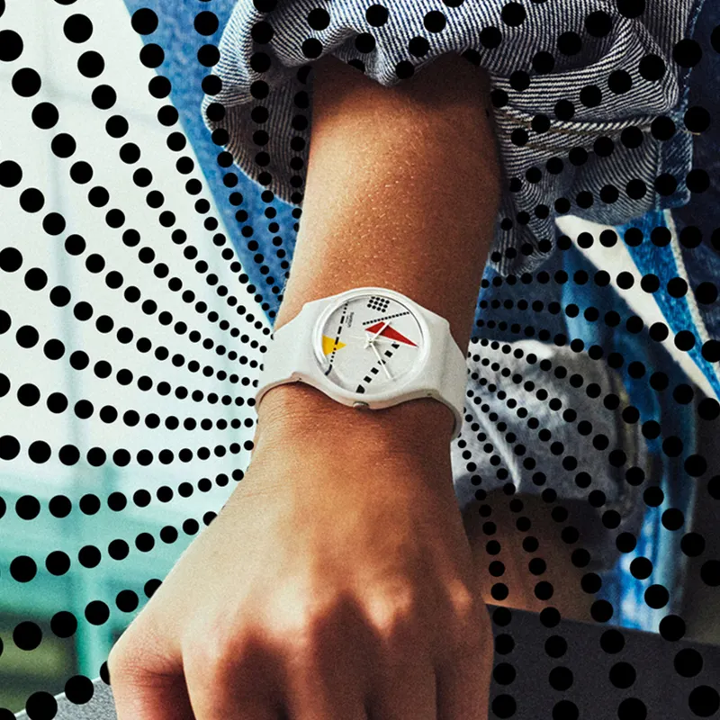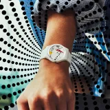 Swatch Quartz Механизм Унисекс Часы 34 мм Белый Циферблат Пластиковый Корпус Часы Силиконовый Ремешок S031W106