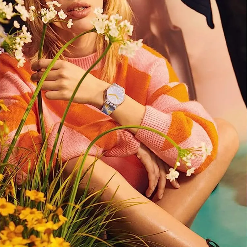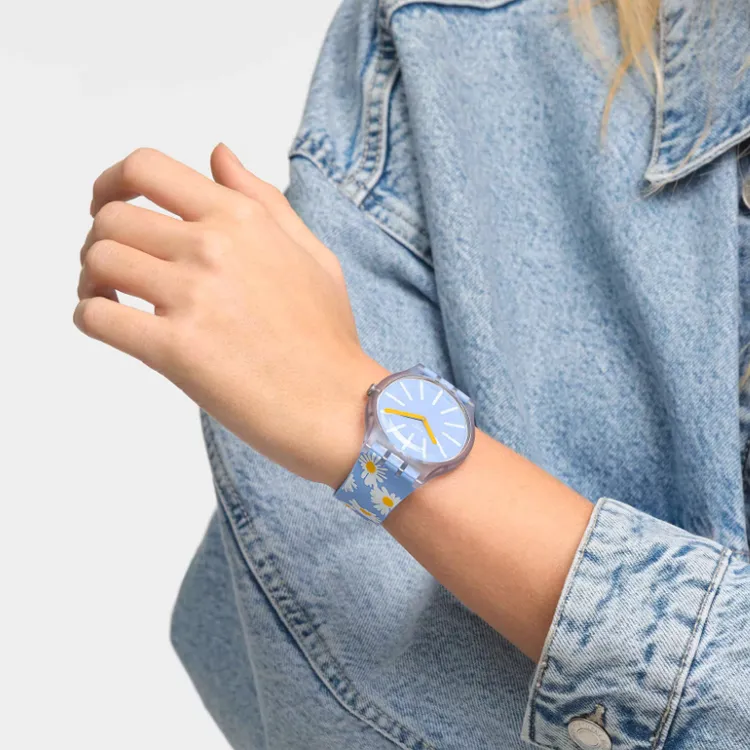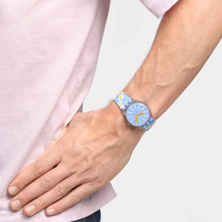 Swatch Quartz Механизм Унисекс Часы 41 мм Синий Циферблат Bio-Based Материал Корпус Часы Силиконовый Ремешок SO29S100