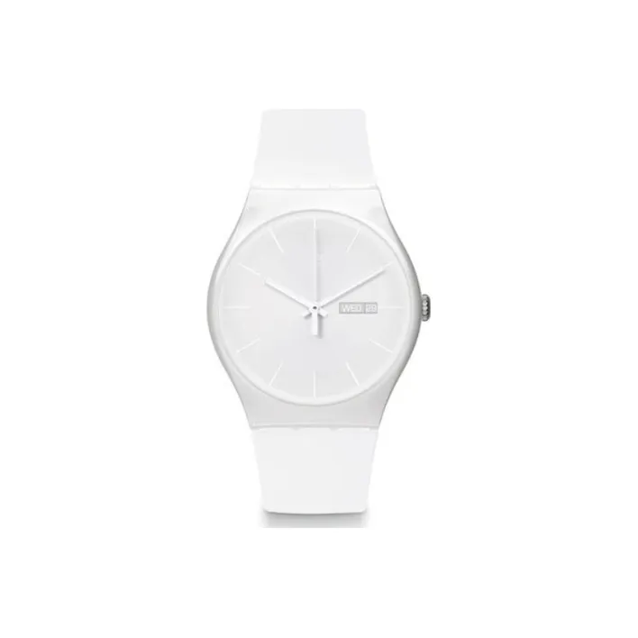 SWATCH Originals Collection Кварцевый механизм Унисекс Часы 41 мм Белый циферблат Пластиковый корпус Часы Силиконовый ремешок