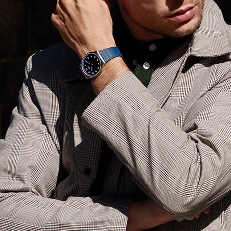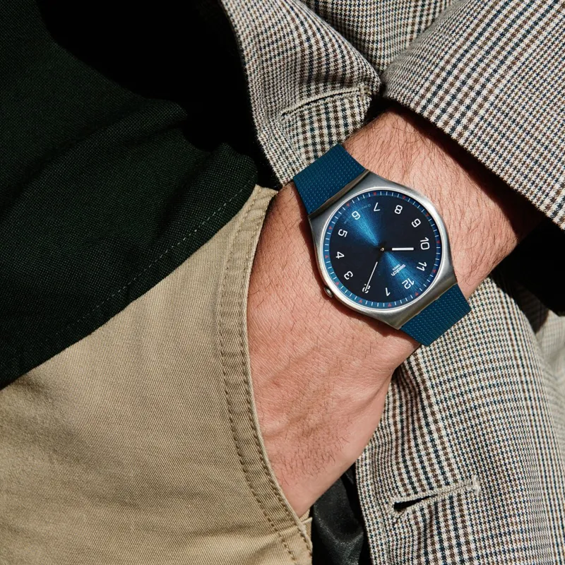 SWATCH SKIN Collection Кварцевый механизм Унисекс Часы 42 мм Синий циферблат Корпус из нержавеющей стали Резиновый ремешок