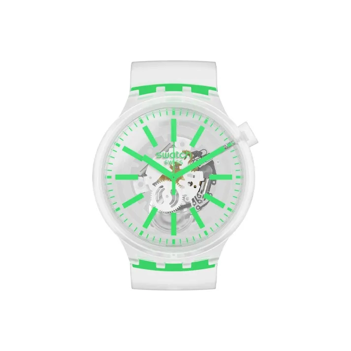 SWATCH Earth Series Кварцевый механизм Унисекс Часы 44,8 мм Зеленый циферблат Пластиковый корпус Часы Силиконовый ремешок