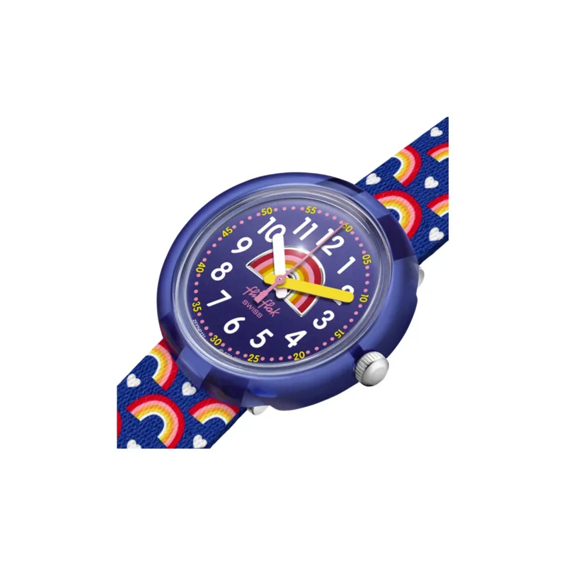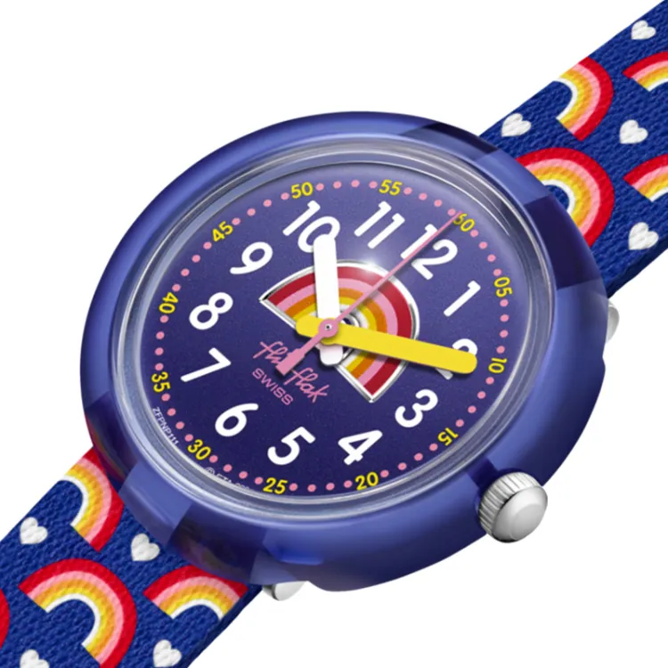 SWATCH Flik Flak Feifei Series Кварцевый механизм Унисекс Часы 32 мм Синий циферблат Пластиковый корпус Тканевый ремешок ZFPNP111