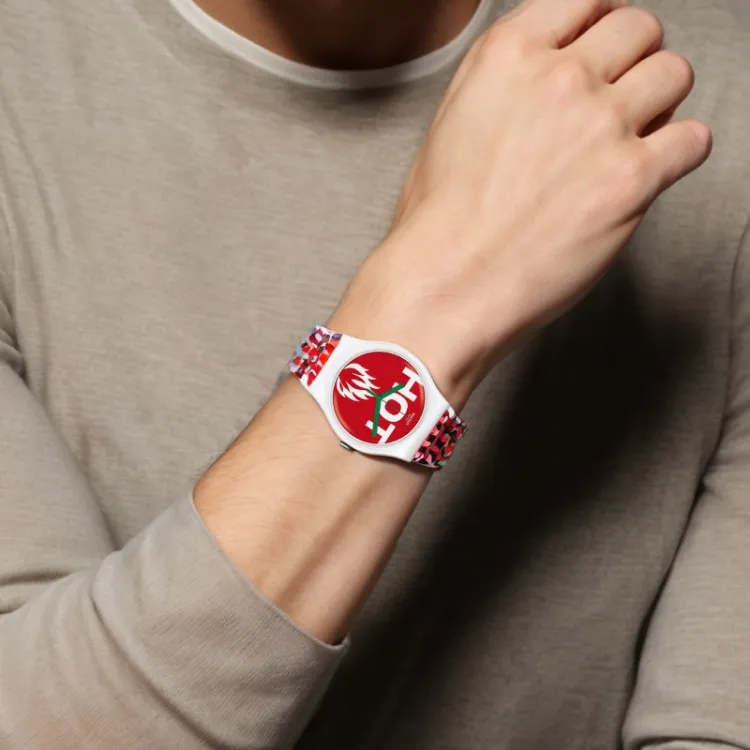 Swatch Quartz Механизм Унисекс Часы 41 мм Красный Циферблат Часы Пластиковый Корпус Часы Силиконовый Ремешок