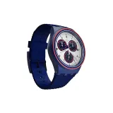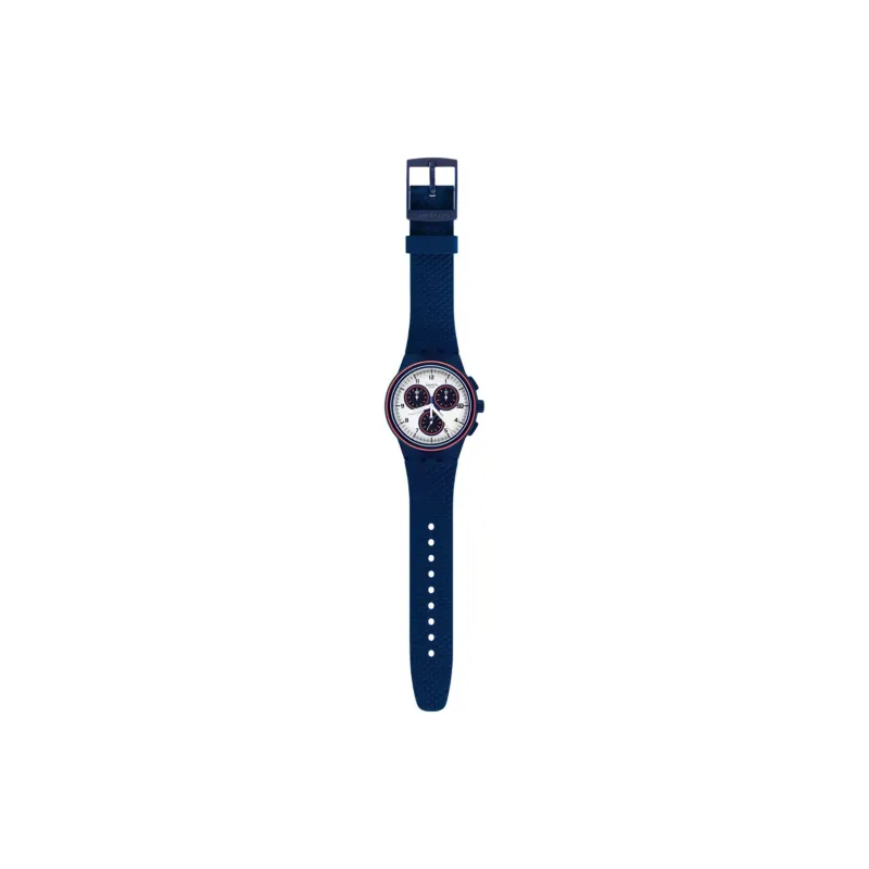 Белый циферблат, синий ремешок.