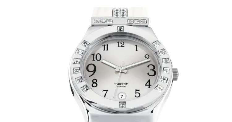 SWATCH Irony Collection Кварцевый механизм Женские часы 33 мм Серебристый циферблат Корпус из нержавеющей стали Резиновый ремешок