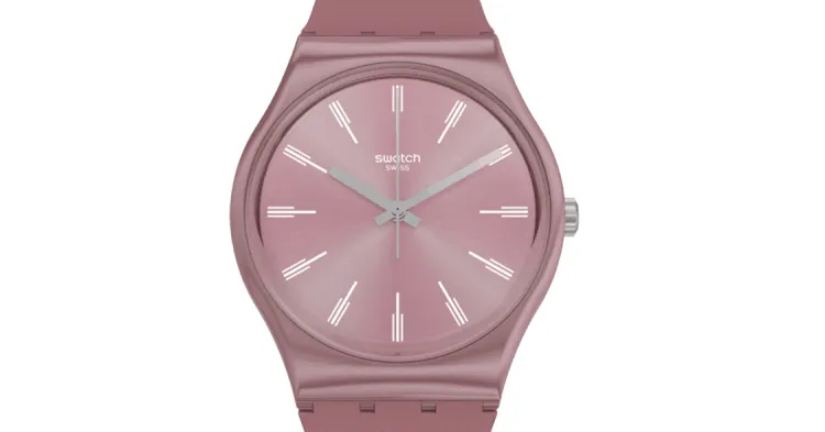 SWATCH Originals Collection Кварцевый механизм Женские часы 39,2 мм Розовый циферблат Часы Пластиковый корпус часов