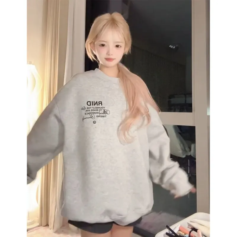 Серый весна-осень тонкий женские свитшоты