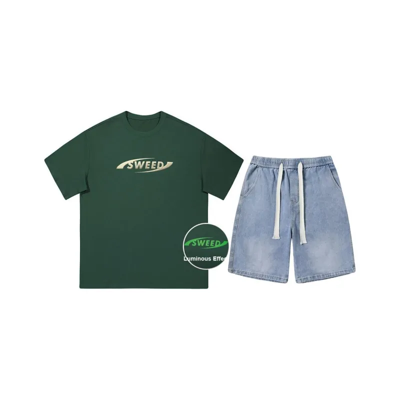 Комплект:Комплект (Зеленый топ + Светло-синие штаны)