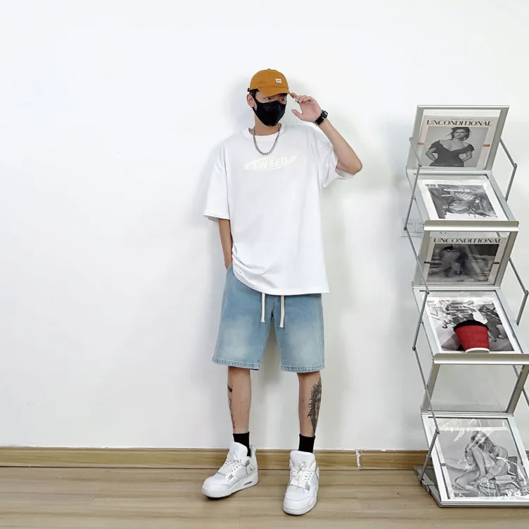 Комплект (Белый топ + Светло-синие штаны)