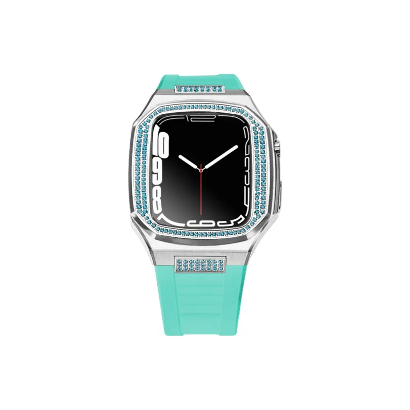 Синий ромбовый bezel + синий силиконовый ремешок + набор интерфейса с бриллиантами