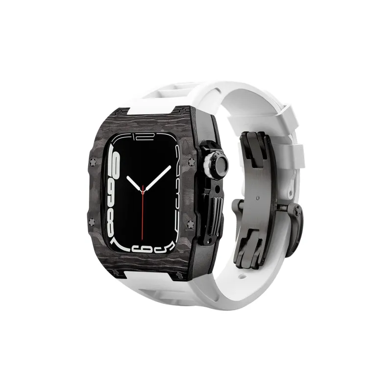 Чёрный bezel + Чёрный корпус + Белый ремешок