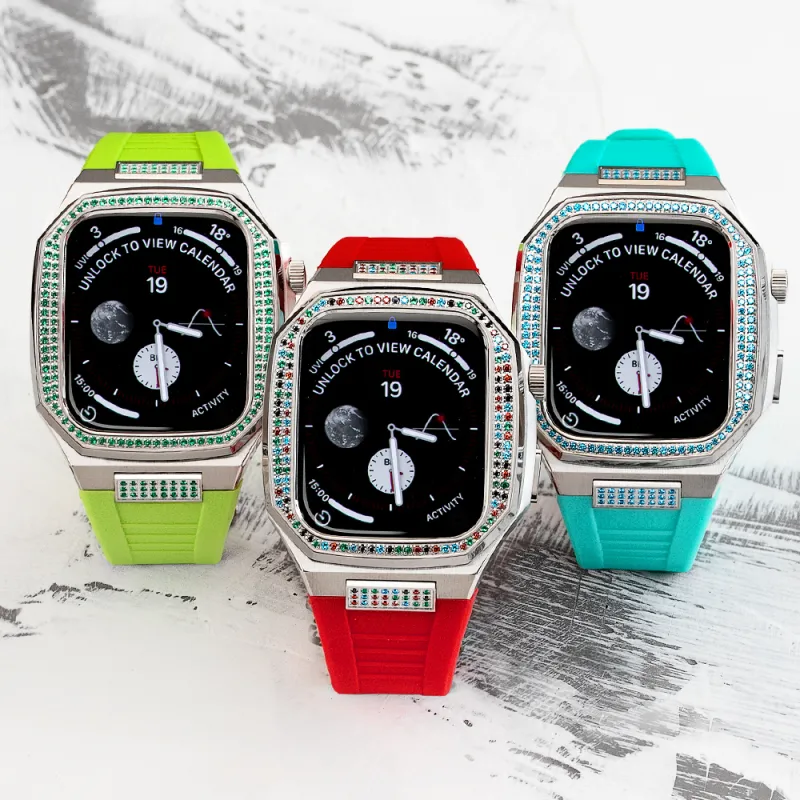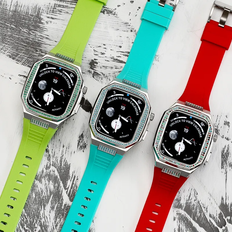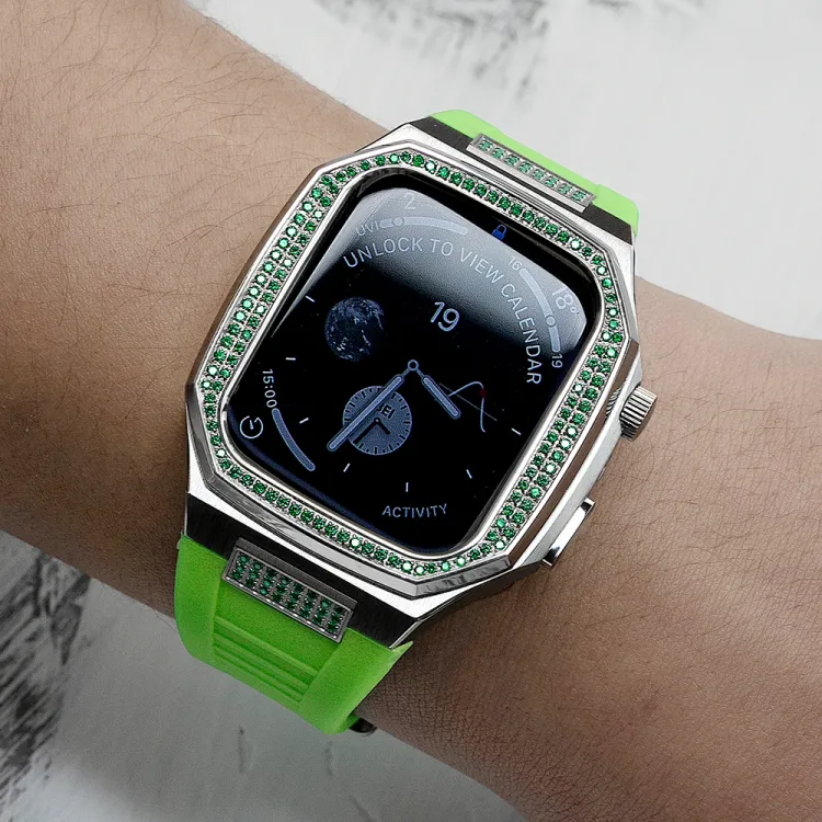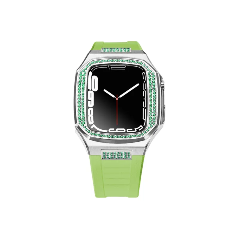 Зеленый бриллиантовый ободок + зеленый силиконовый ремешок + комплект с интерфейсом и бриллиантами