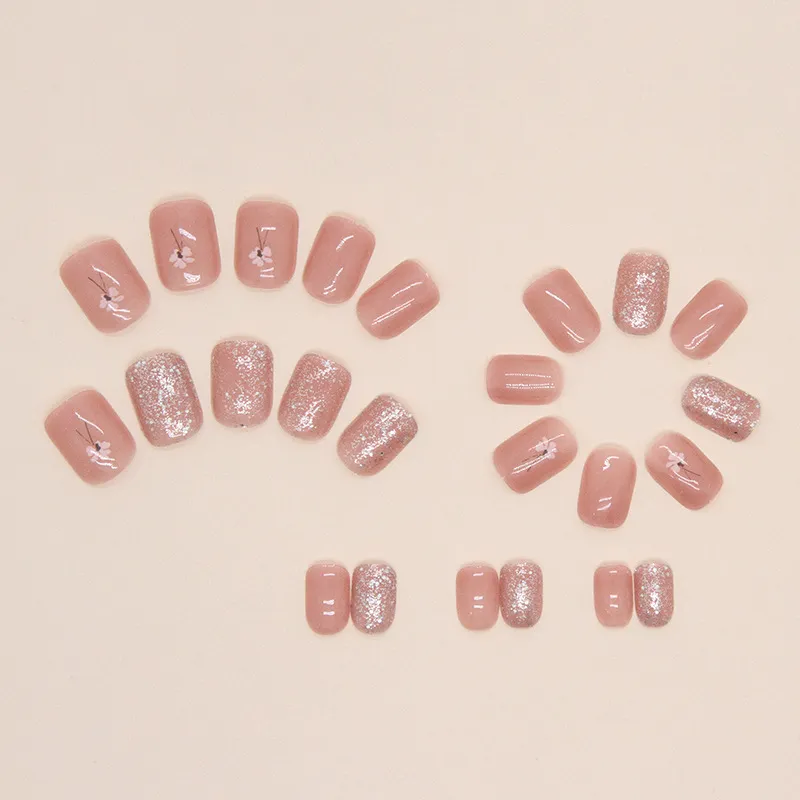 Sweet Pillow House Элегантность Элегантный Винтаж Цветочный Дизайн False Nail Короткий Розовый Телесный Flashing
