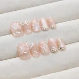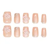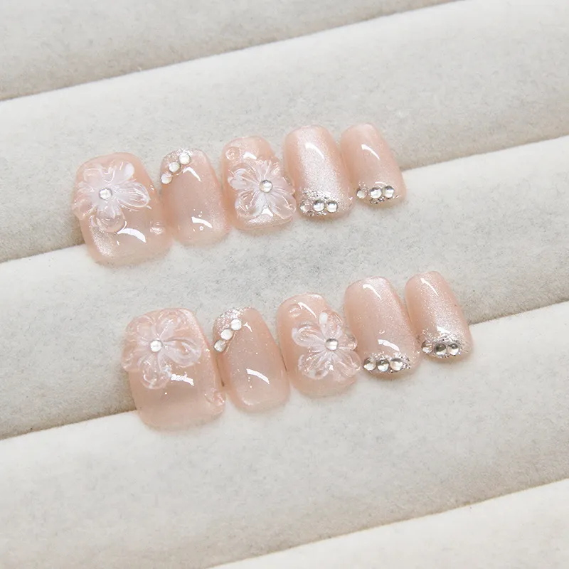 Sweet Pillow House Розовые Цветы False Nail Короткий Квадрат Нюдовый Розовый Однотонный Милый