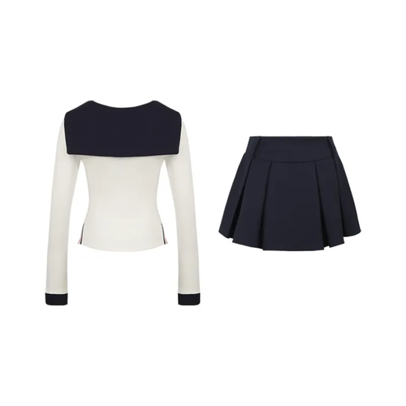 Комплект:Белый топ + темно-синяя юбка, комплект одежды