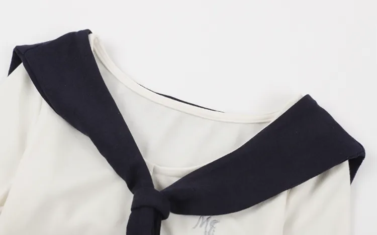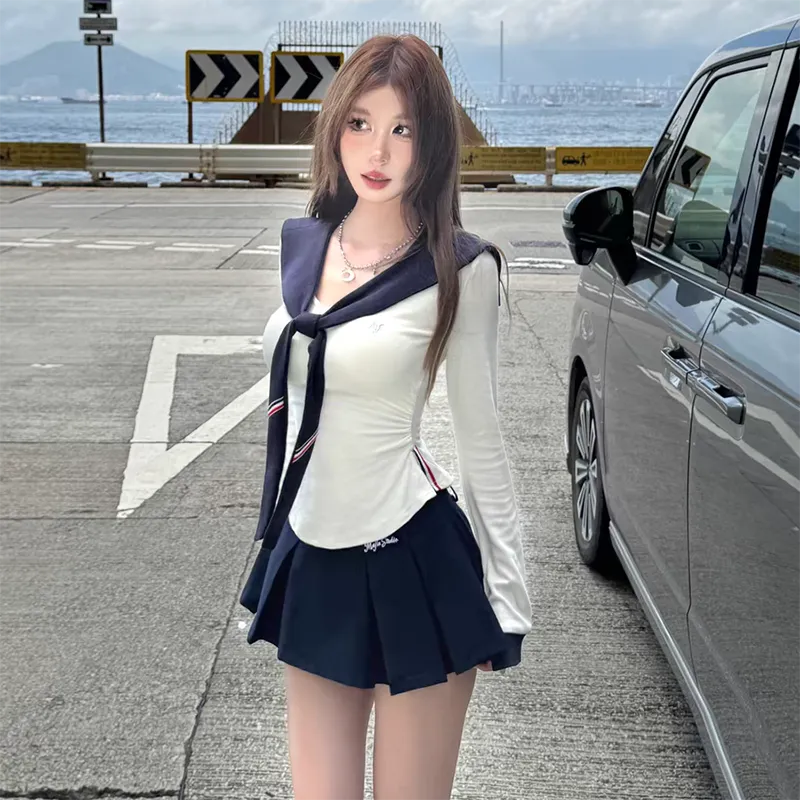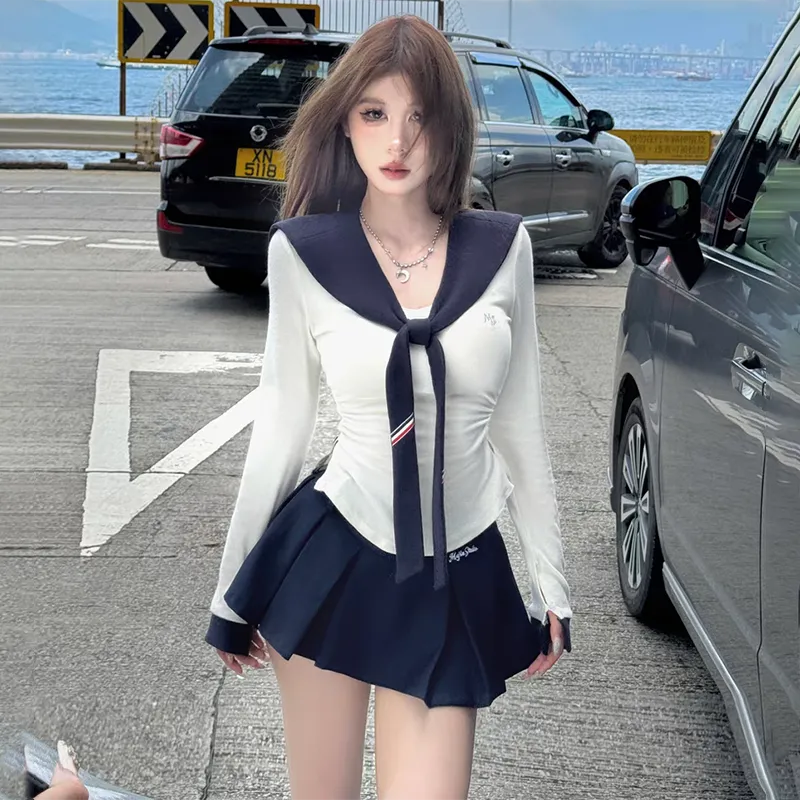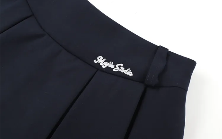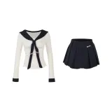 Белый топ + темно-синяя юбка, комплект одежды