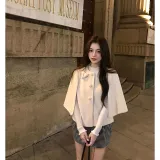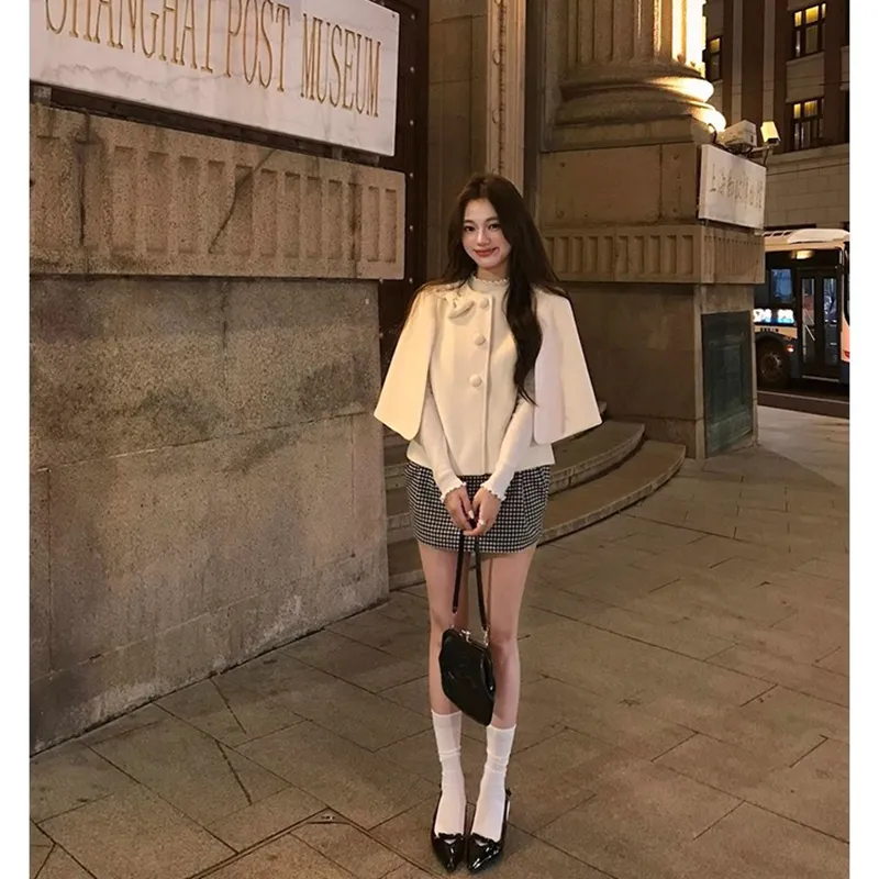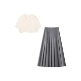 Комплект:Белый плащ + серая юбка, комплект одежды