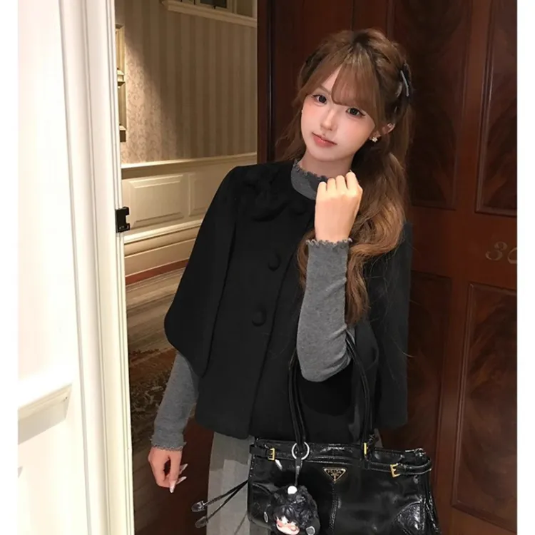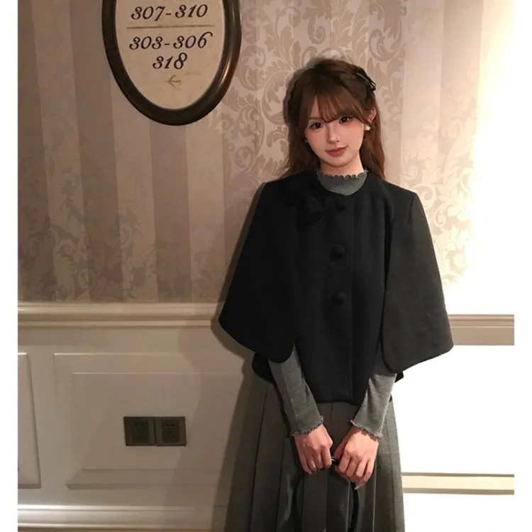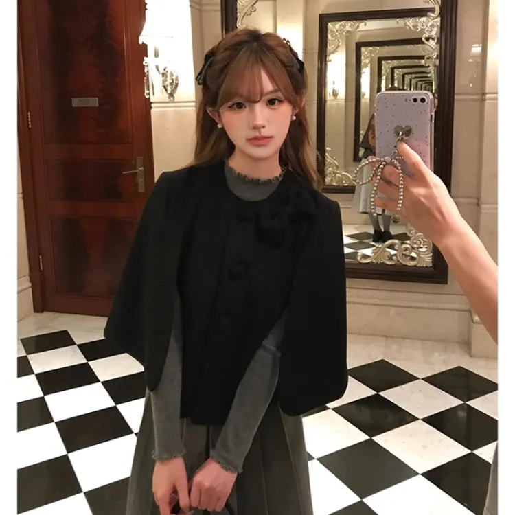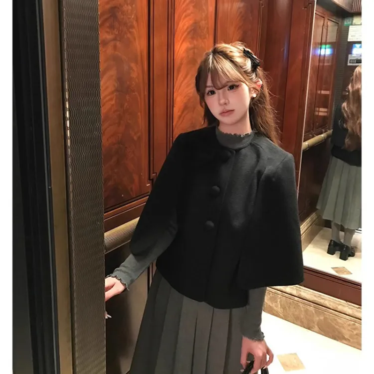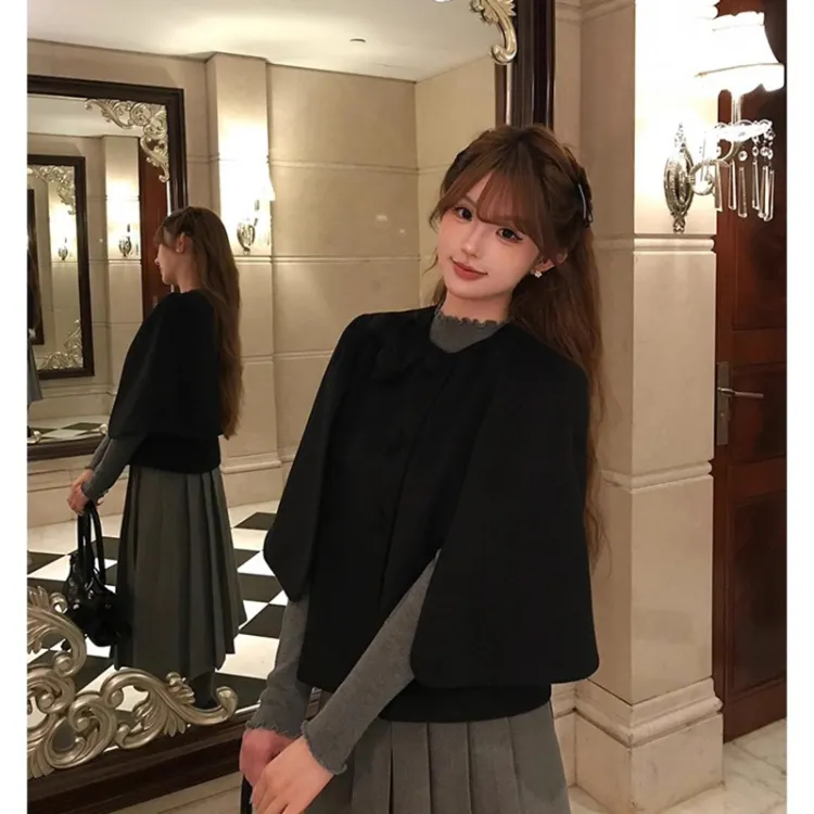 Черный плащ + серая юбка, набор одежды