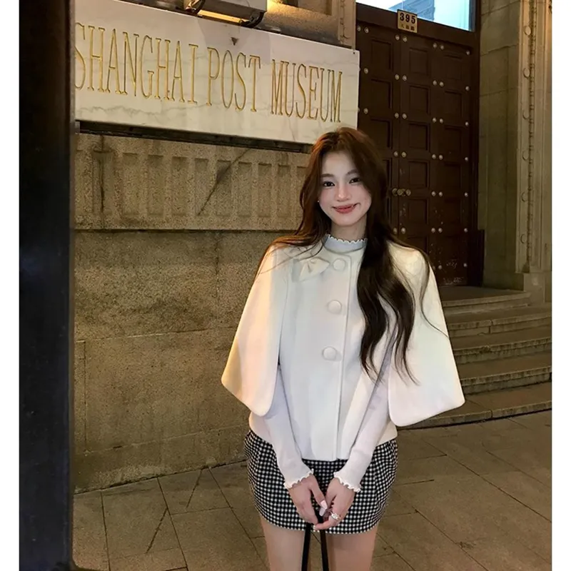 Белый плащ + серая юбка, комплект одежды