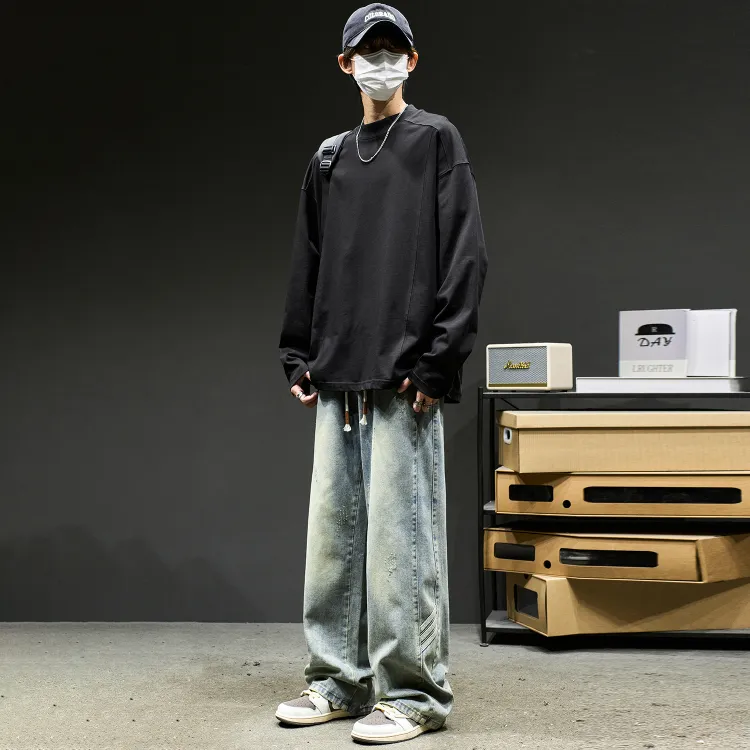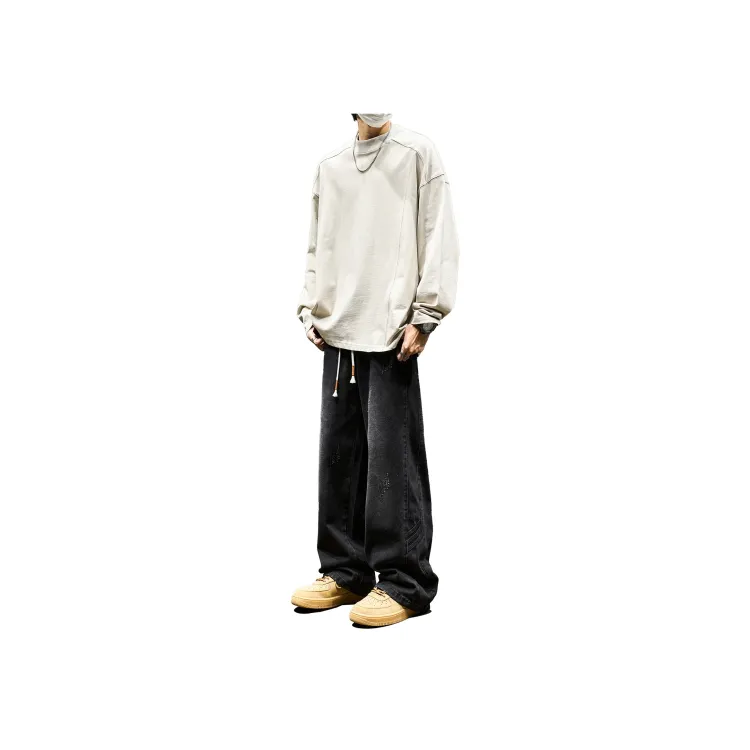 Цвет:Светло-серый топ 6736 + черные джинсы [Включает 1 упаковку носков, без хлопот, покупка и экономия]