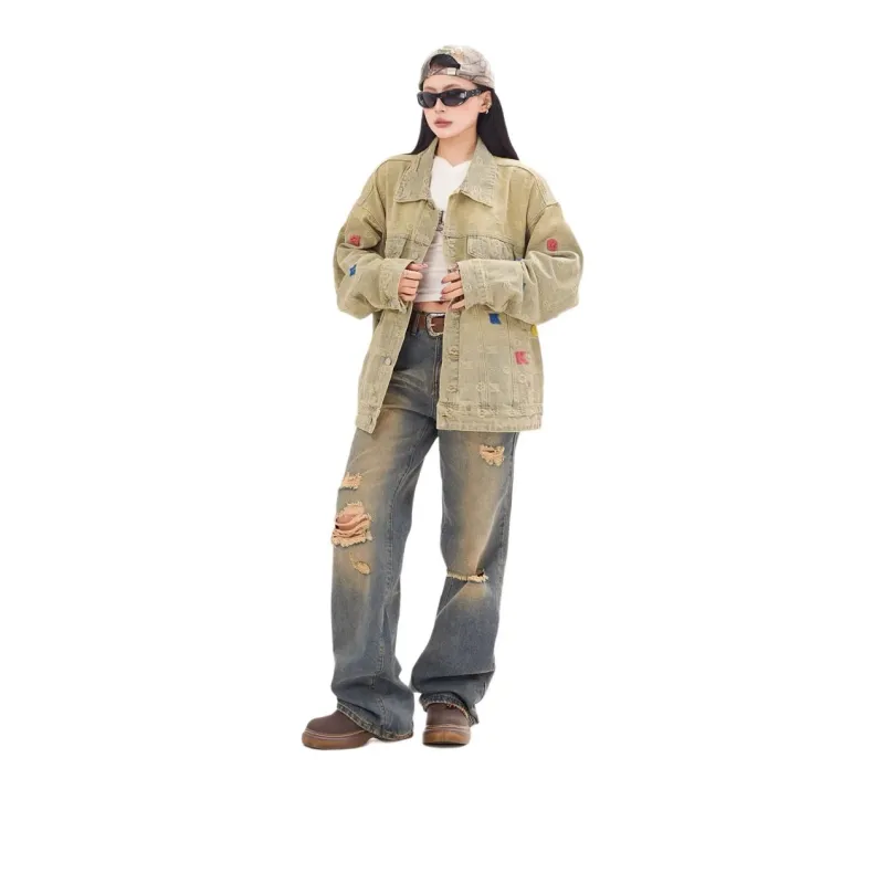 SZSX Деним Куртка Унисекс Желтый Грязь