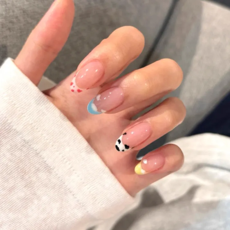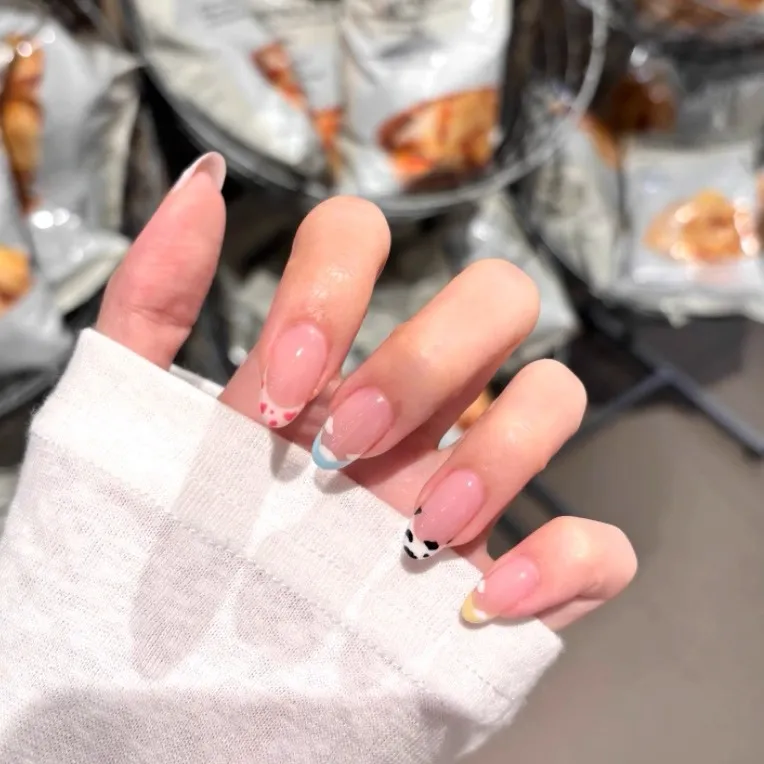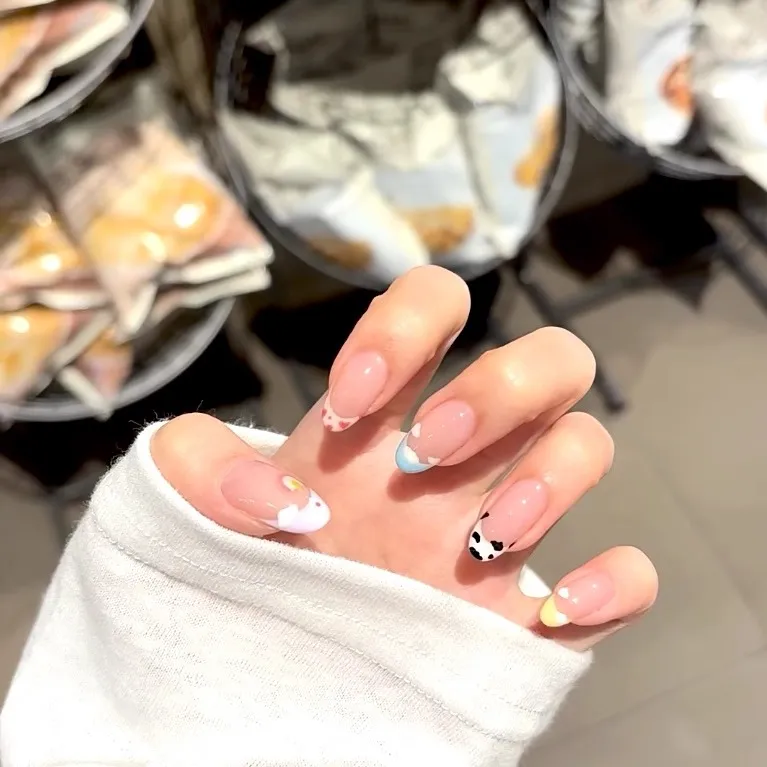 T Z Мультяшный Свежий False Nail Милый Ручной Рисунок Дофамин Французский Маникюр Короткий Квадратный Цвет Jump Цвет Милый