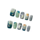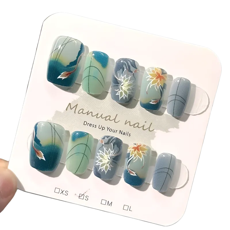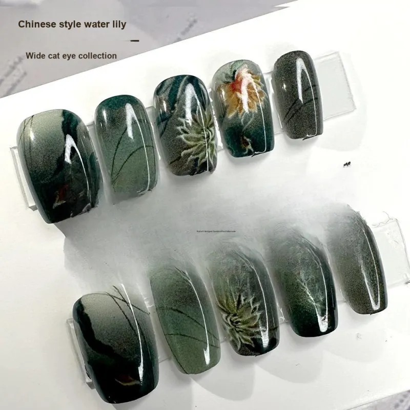 T Z Китайский стиль Water Lily Cat Eye False Nail MID Cropped Icy Clear Green Solid Color New Chinese Style