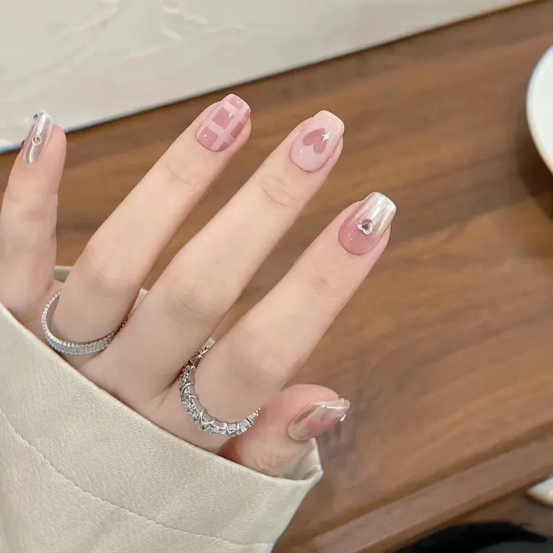 T Z Французский Magic Mirror Сверкающий страз Western Sweet And Spicy Urban Chic Style False Nail