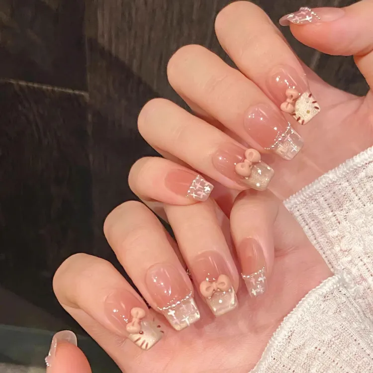 T Z HAND DRAWN Румяна Кошачий глаз Французский Бант False Nail MID Длина (размер в длину) Укороченный Круглый Телесный Градиентный Милый