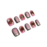 T Z Горячая девушка SUBCULTURE Готический кожа Улучшающий False Nail Укороченный Квадрат Черный Красный Румяна Стиль пятна Instagram