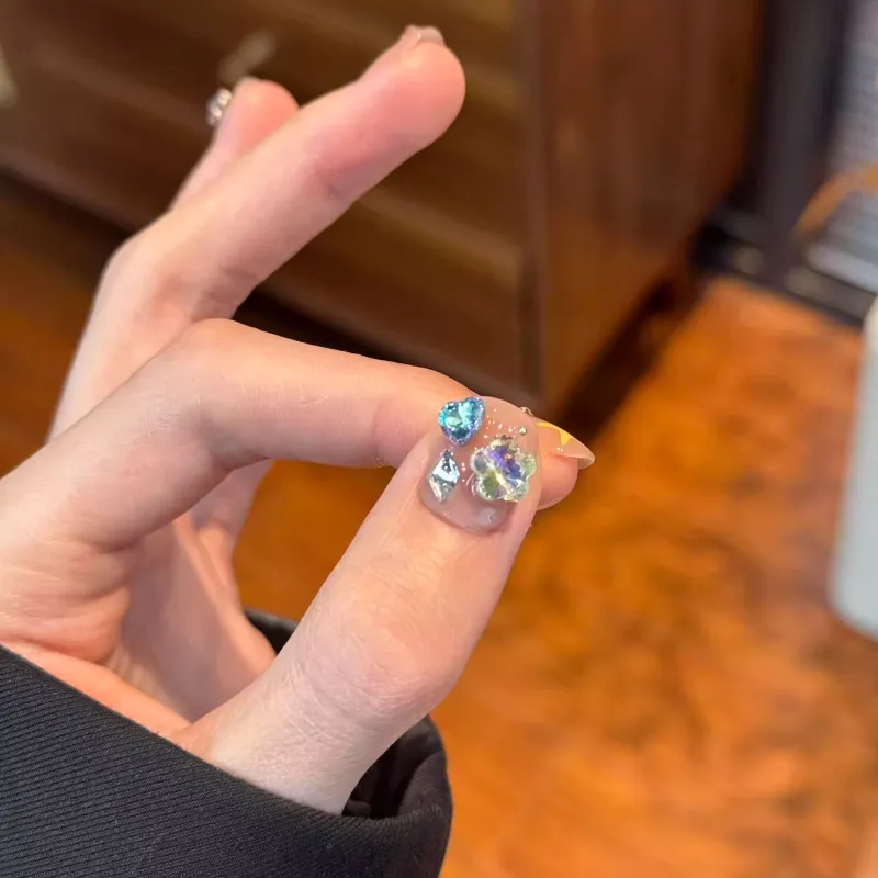 T Z Ледяная прозрачность Городской CHIC Позиционирование стиля Pure Звезда Crushed Кирпич False Nail Укороченный Круглый Короткий Многоцветный Ромб Телесный Flashing