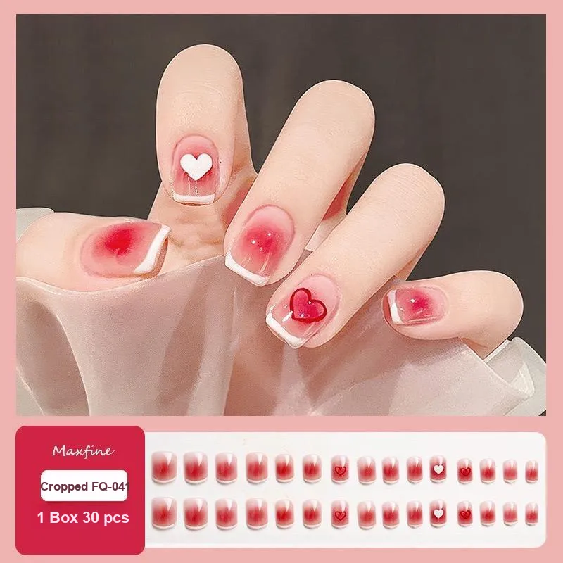 T Z Сладкий стиль Сердце Элегантный False Nail MID Длина Укороченный Розовый Прозрачный зеленый Румяна Stain Однотонный