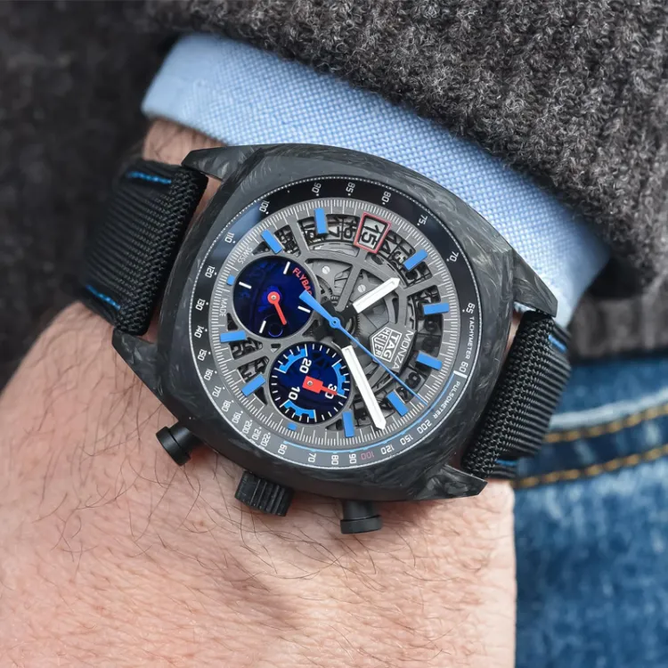 TAG HEUER Автоматический Механический Часы Мужские 42 мм Черный Циферблат Углеродное Волокно Чехол Часы Тканевый Ремешок