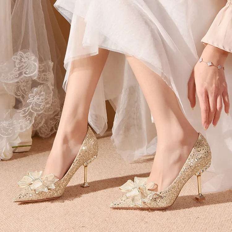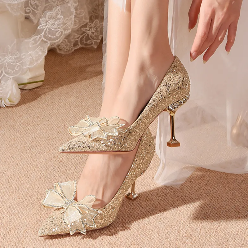 Take the Qin Узкий каблук Высокие каблуки Женские Шампанское