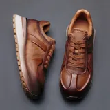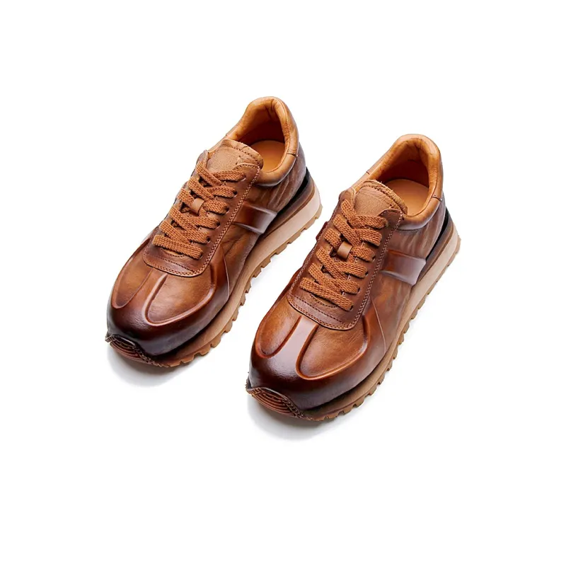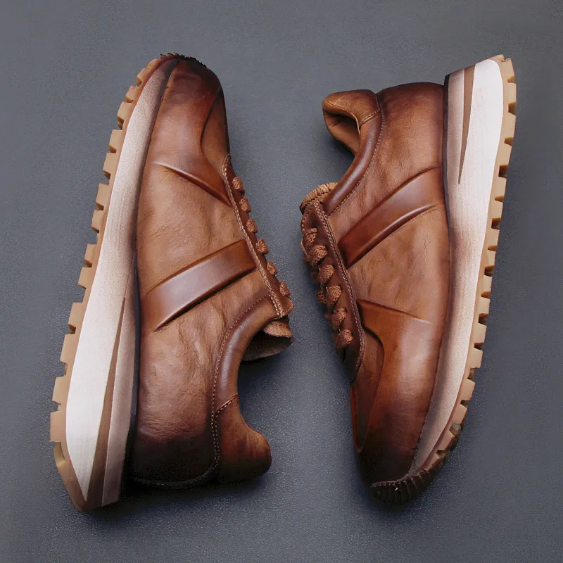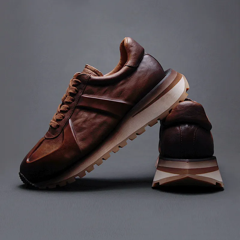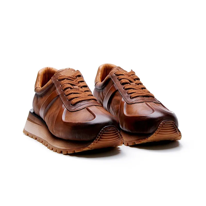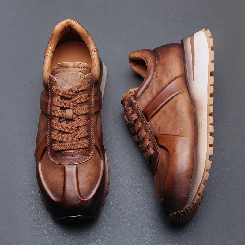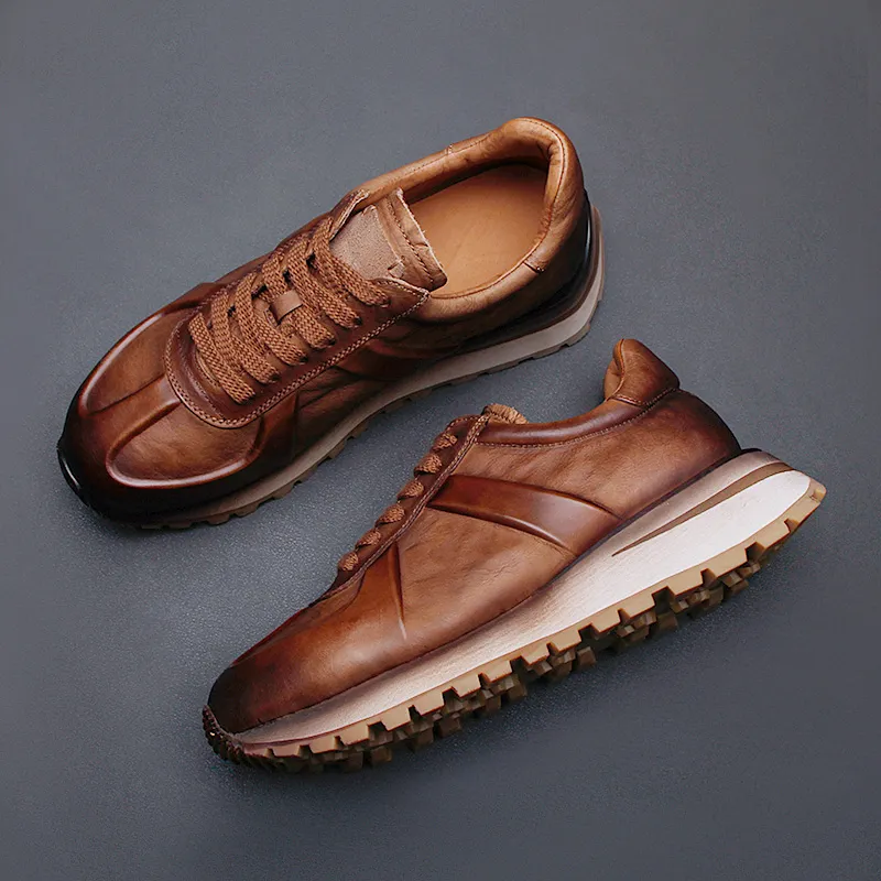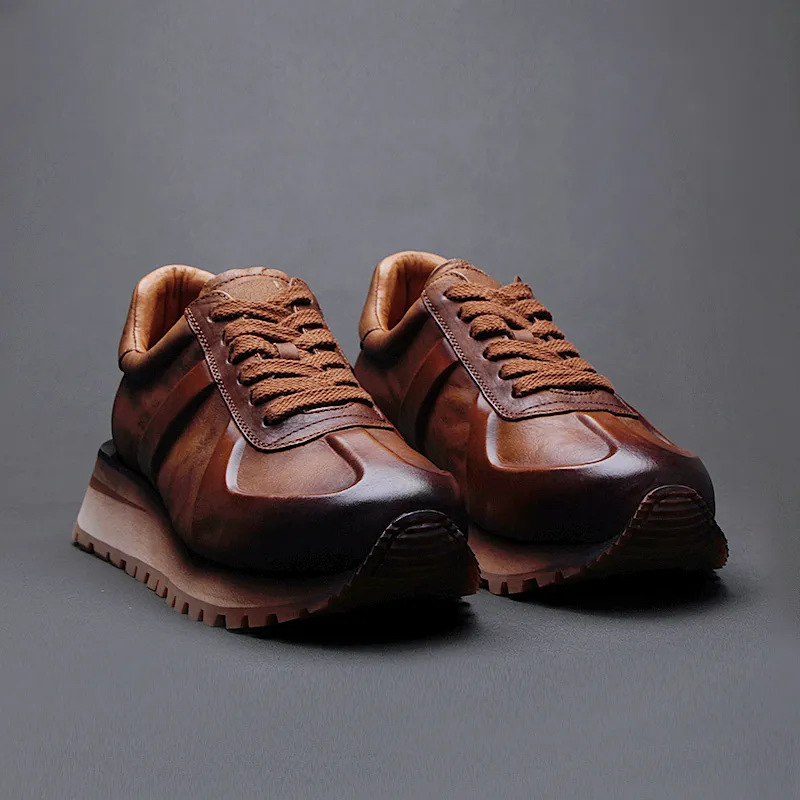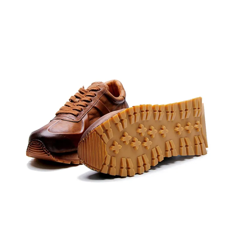 Высокие объекты визуально увеличивают рост Низкий топ Толстая подошва Мужские Коричневые