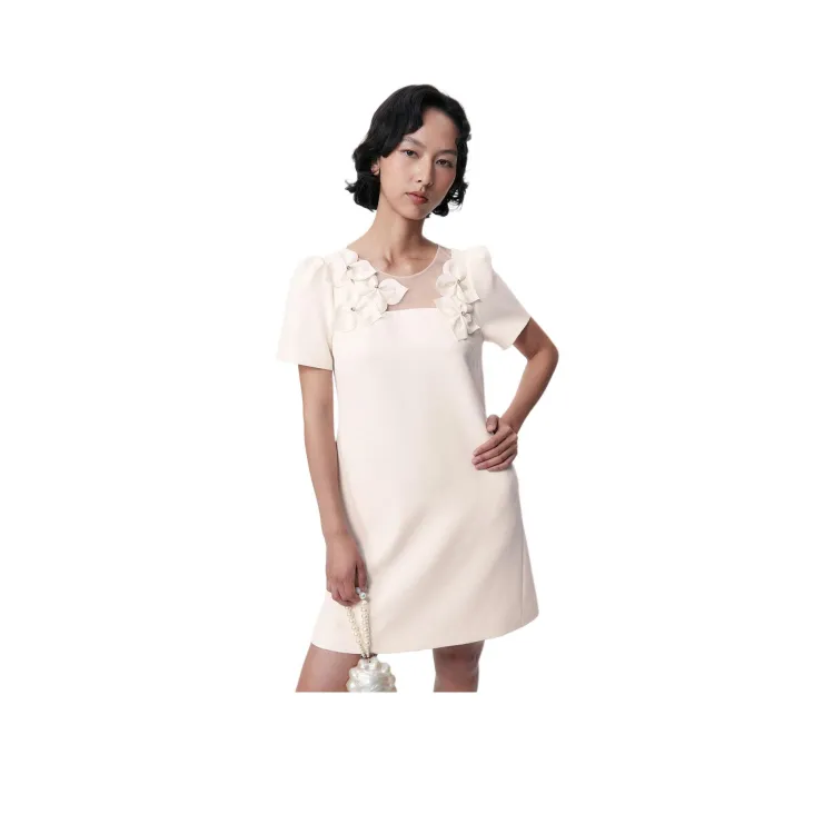Apricot, Рefined 3D Flower, A-Line Silhouette