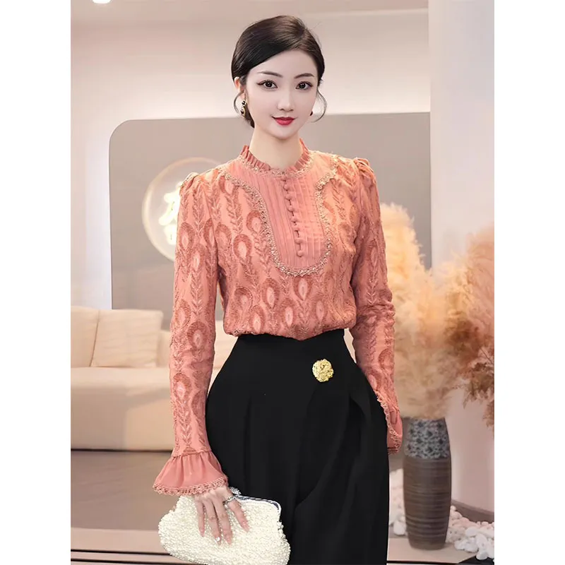 TANGXI Грейпфрутовый Розовый Женские Рубашки