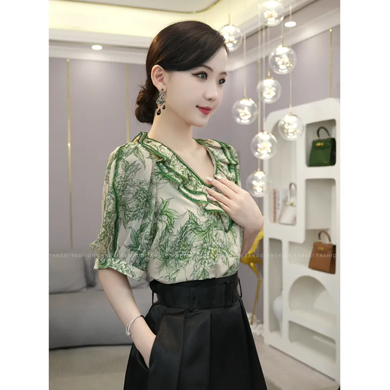 TANGXI Зеленые Женские Рубашки