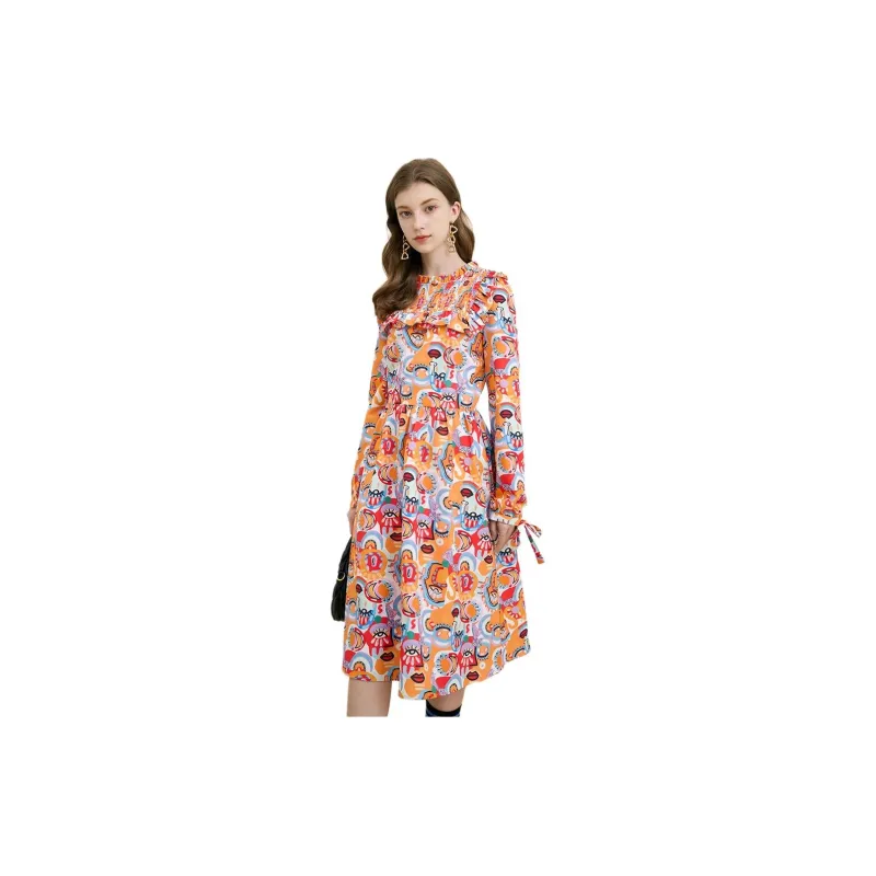 Tanni Длинное платье с длинными рукавами женское оранжевое