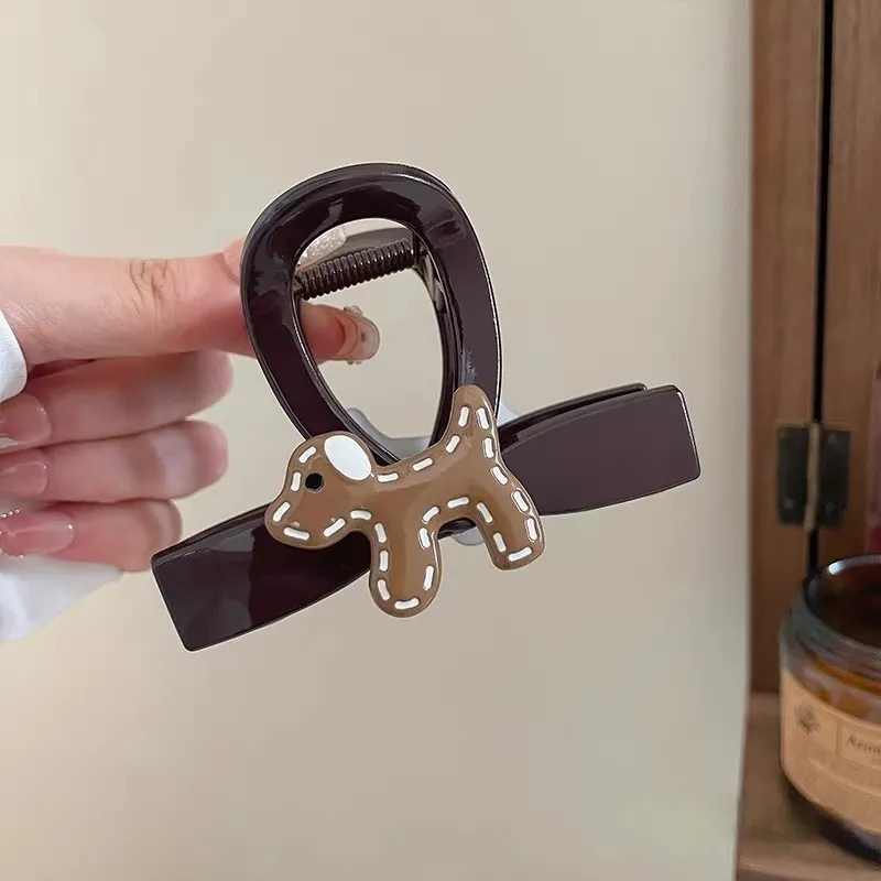 Стиль:Винтажная заколка для волос "Щенок" - коричневого цвета