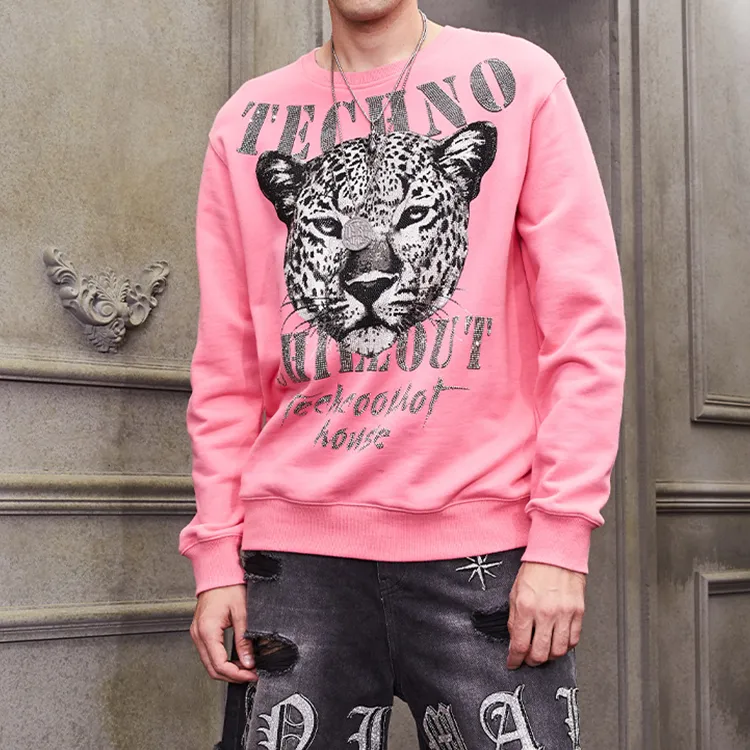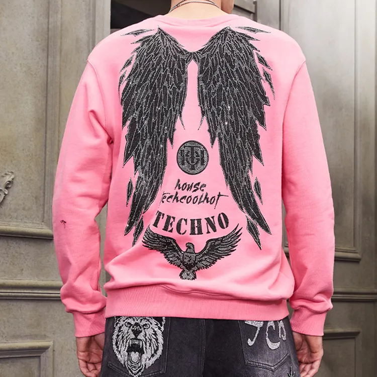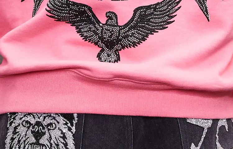 TCH Леопард Full Collection Rhinestone Angel Wings Дофаминовый Стиль Boyfriend Фигура Slimming Sweatshirt Unisex Pink